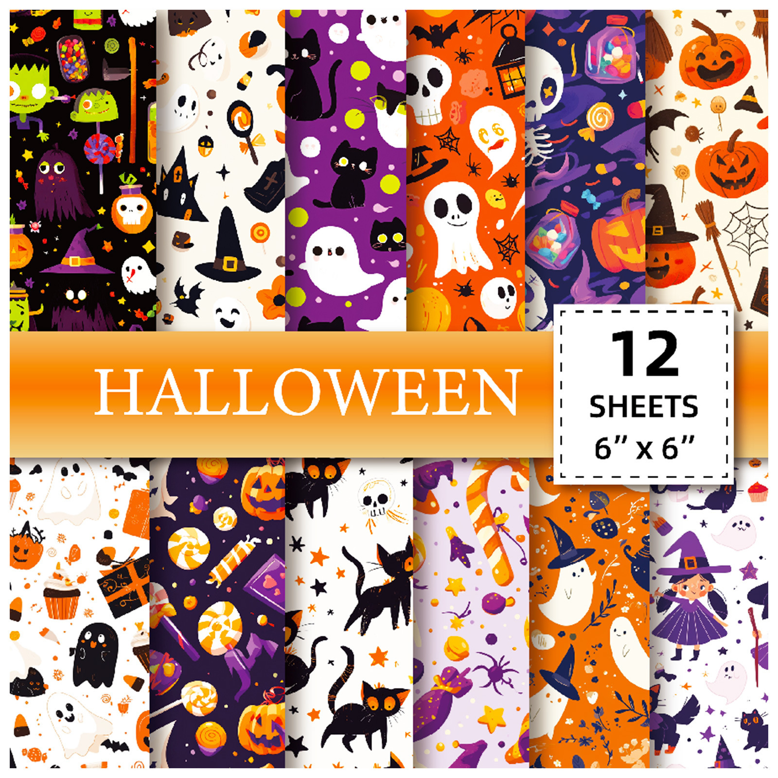 ハロウィン素材纸かぼちゃゴーストコウモリ手帐12枚コラージュ下地纸アマゾンハロウィン素材纸
