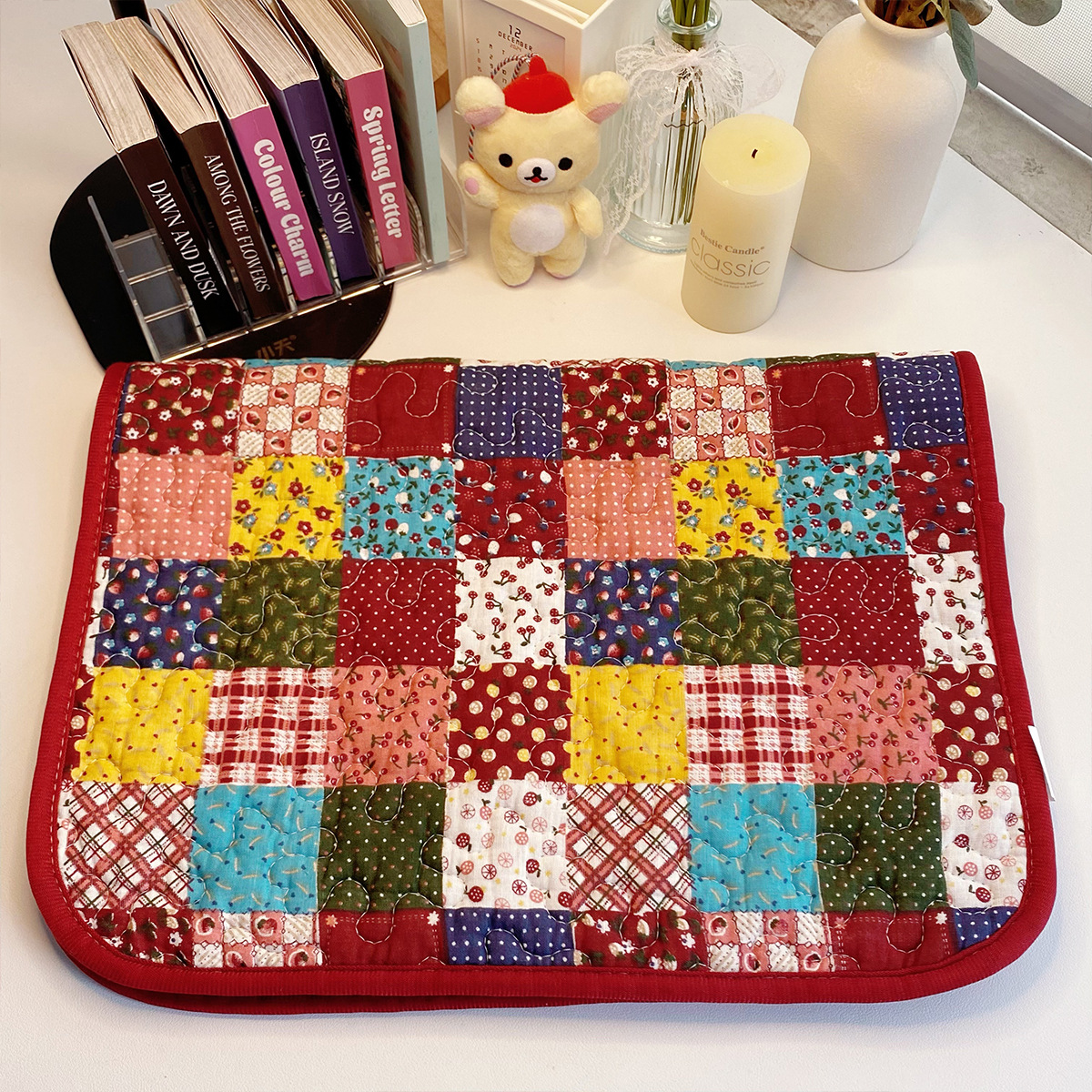 手帳の綿のテーブルクロスをつなぎ合わせて手帳を収納します。