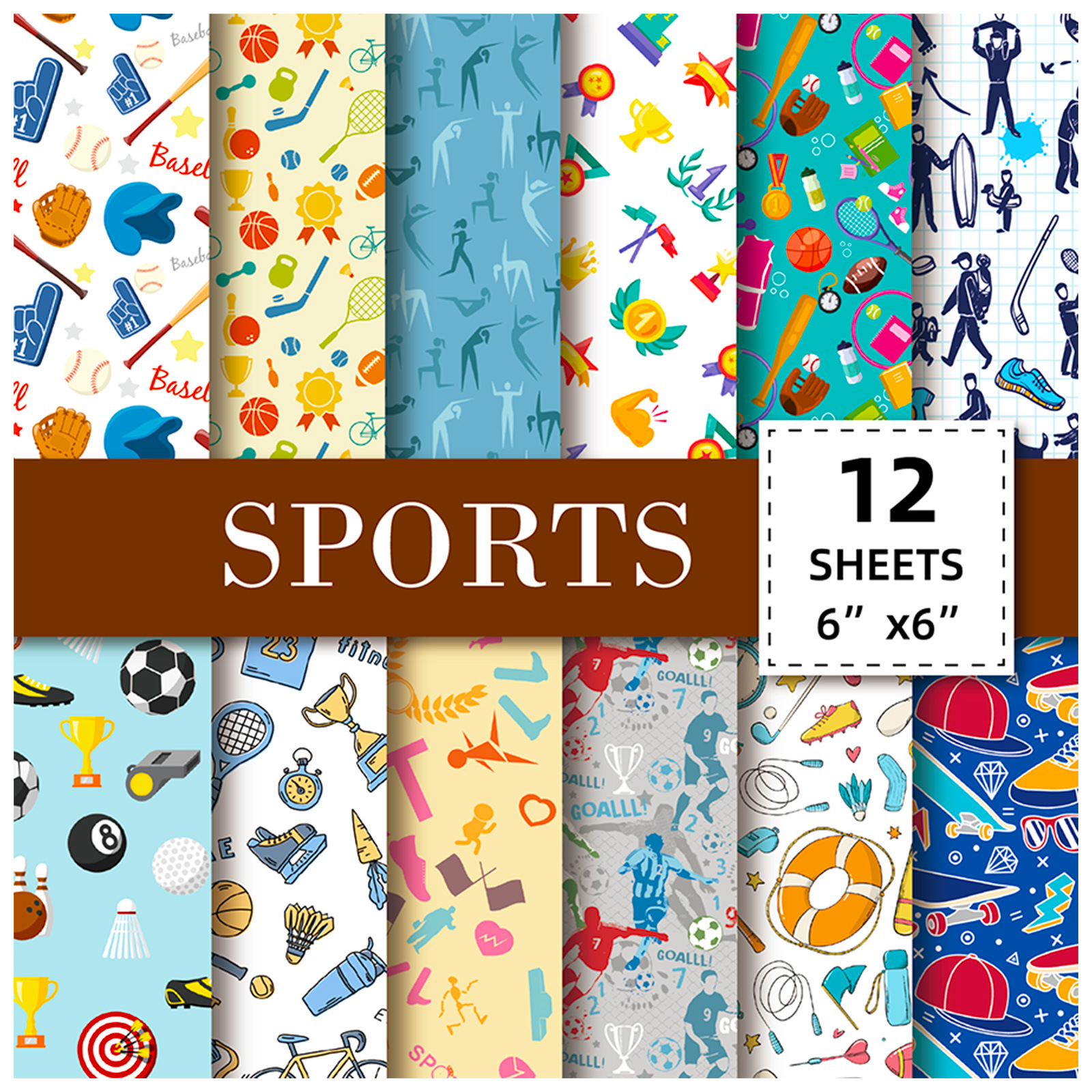 12枚/パックスポーツテーマ越境新品背景手帳スクラップブックボール類素材ペーパー下敷き