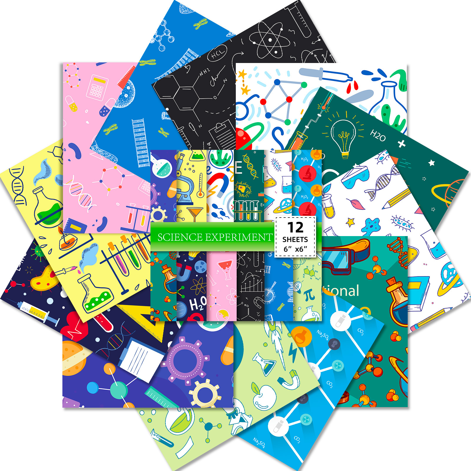 12枚/包科学実験手帳素材紙クリップ本diy手作りカード作成クリエイティブ背景紙