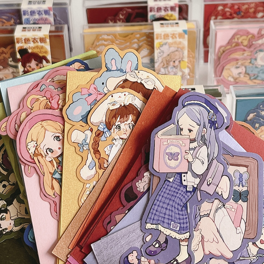 普通の子犬のカラーのタンスの箱の素材の紙のオリジナルの少女の手の帳簿のシールの素材の小さい清新な装飾は貼ります