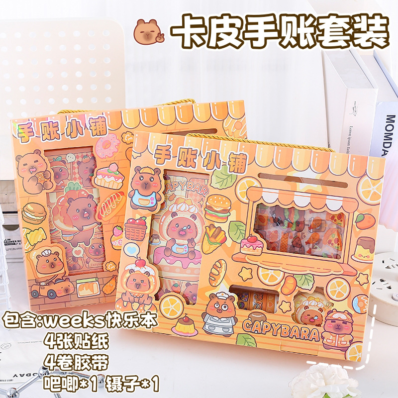 カピバラハンドブックセット漫画かわいいイルカバーバー学生ノートブックハンドブックステッカー文具セット