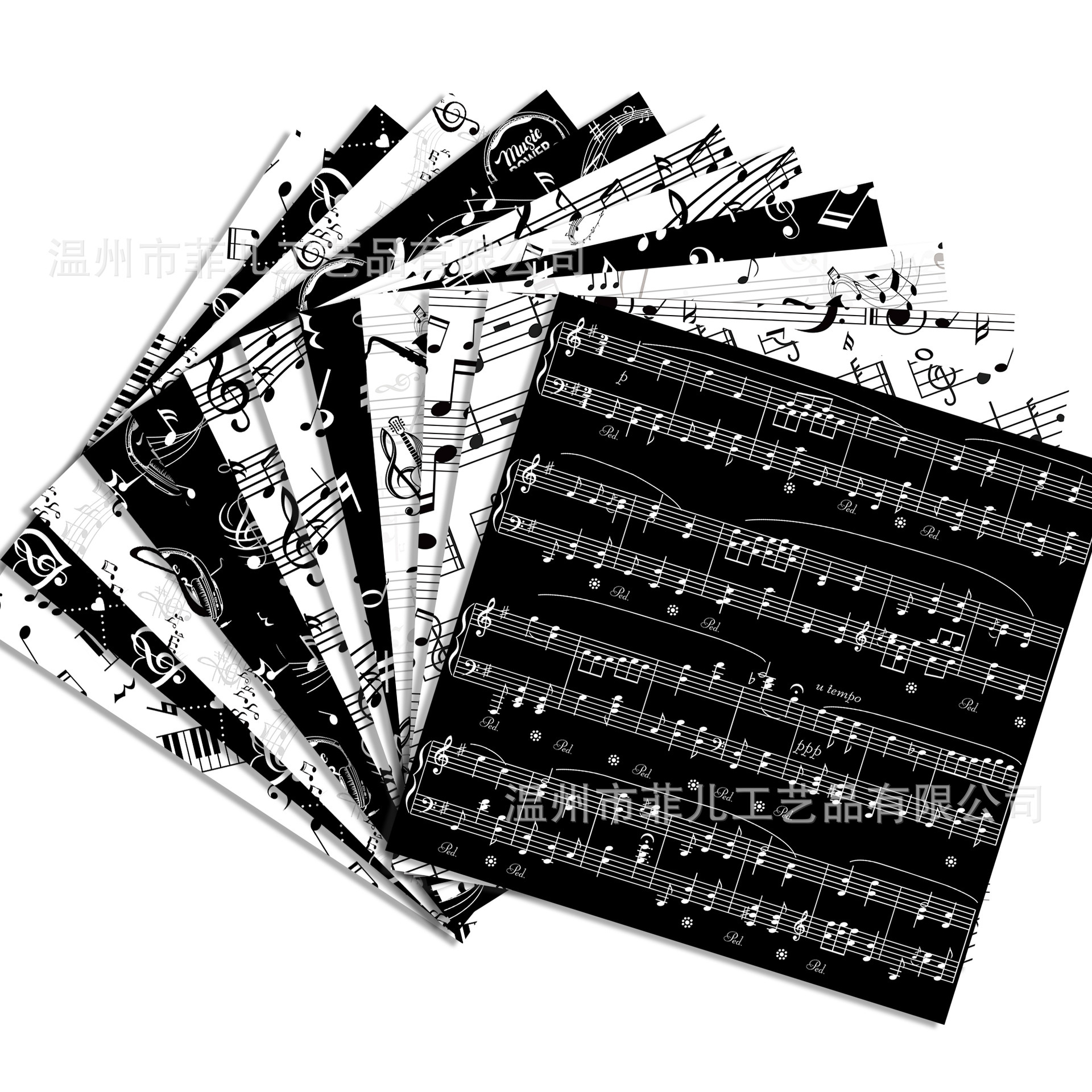 WW190-15 黒と白のピアノキー背景紙 DIY コラージュ素材ボール紙黒と白の音符装飾背景紙