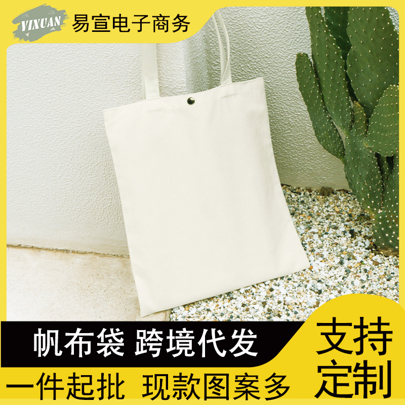 クリエイティブでシンプルなスナップボタン付きキャンバスバッグ、ロゴ印刷可能なキャンバスバッグ、フォックスコットンバッグ、クロスボーダードロップシッピングを供給