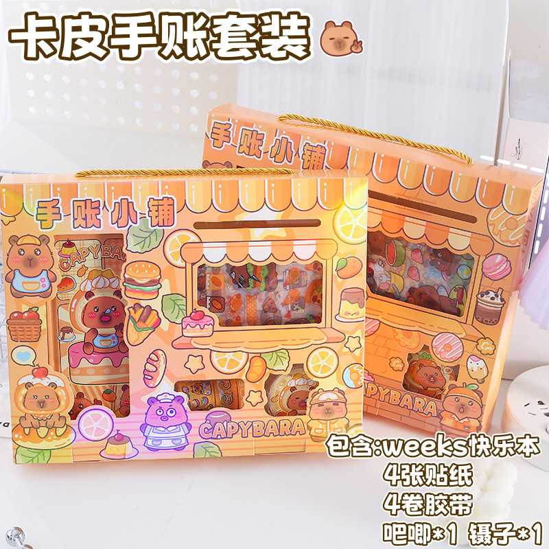 カピバの取っ手の帳簿のセットの漫画のかわいい豚の豚のバーの学生のノートの手帳のシールの手帳のセット