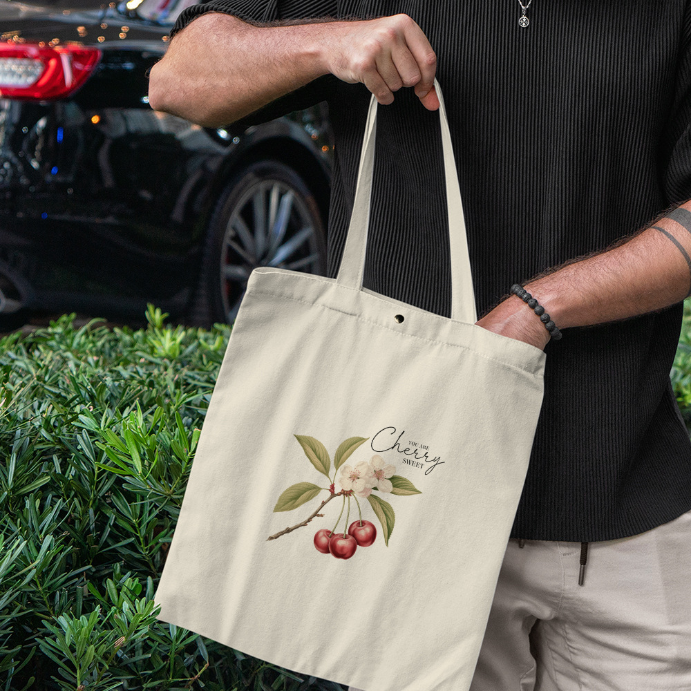 スナップボタン付きのクリエイティブでシンプルなキャンバスバッグ、ロゴを印刷できるキャンバスバッグ、チェリーコットンバッグ、クロスボーダー配送を供給