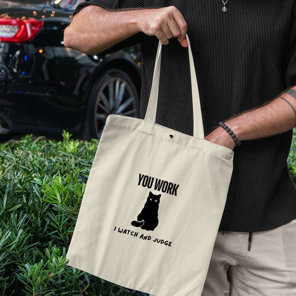 スナップボタン付きのクリエイティブでシンプルなキャンバスバッグ、ロゴ印刷可能なキャンバスバッグ、黒猫のコットンバッグ、クロスボーダー配送を供給します。
