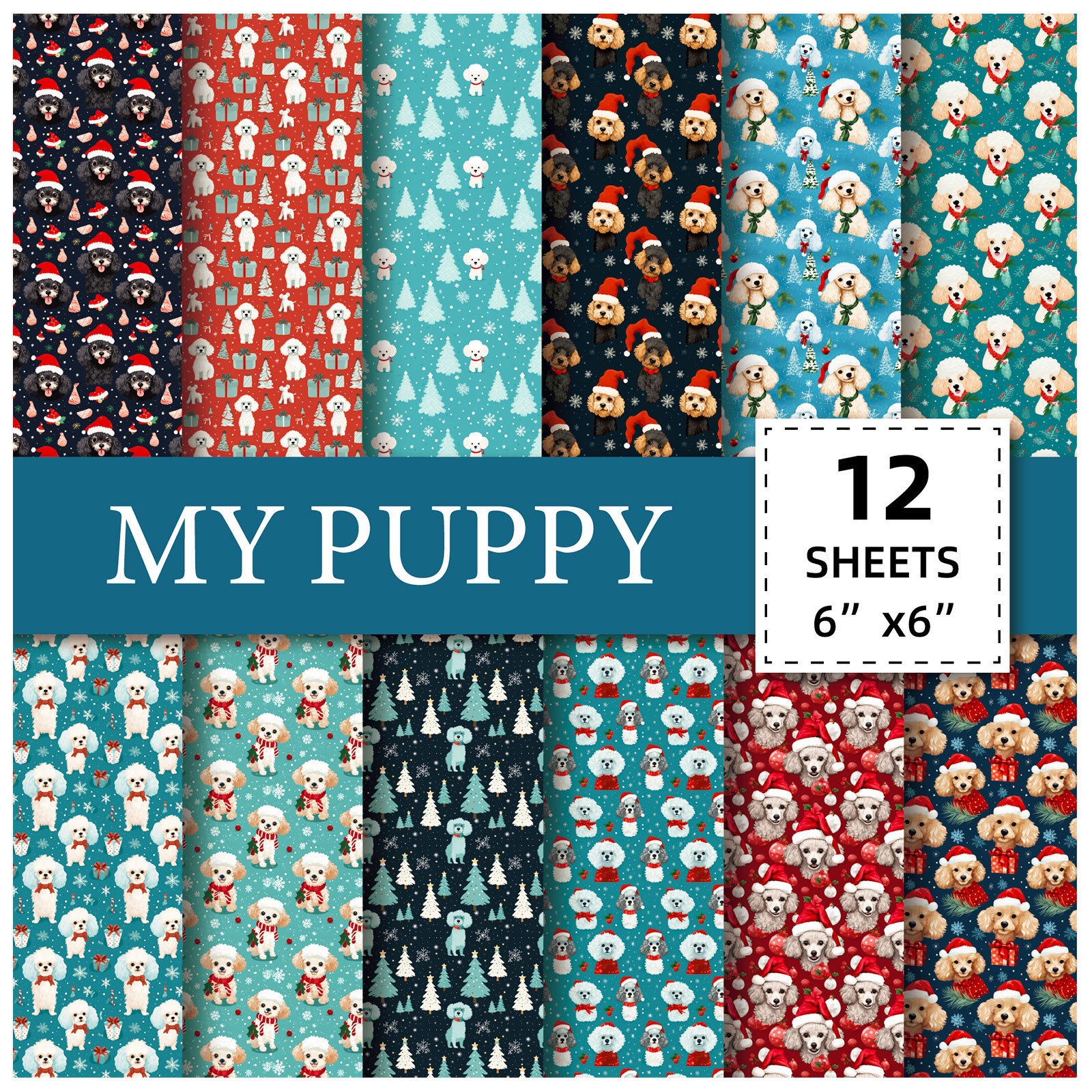 12 枚/パッククリスマス子犬 DIY フォトアルバムスクラップブック紙 6inch ハンドブック折り鶴カード作成背景折り紙