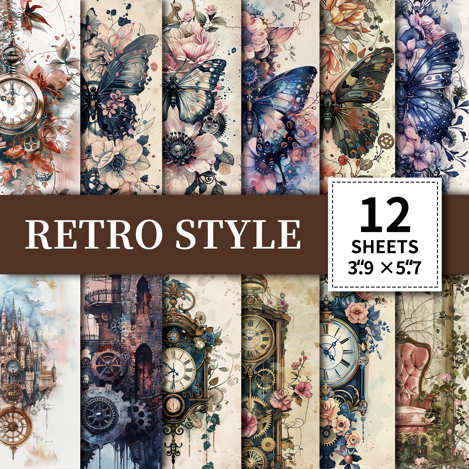 12 枚/パック新レトロ文学ハンドブック素材紙ビッグベン蝶テーマ非繰り返しメッセージベース紙
