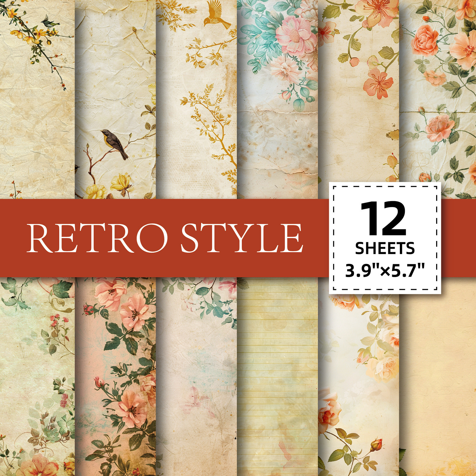 ビッグセール 12 枚/パックレトロな汚れ花と鳥の絵画素材紙古い書き込み可能な DIY ハンドブック装飾背景