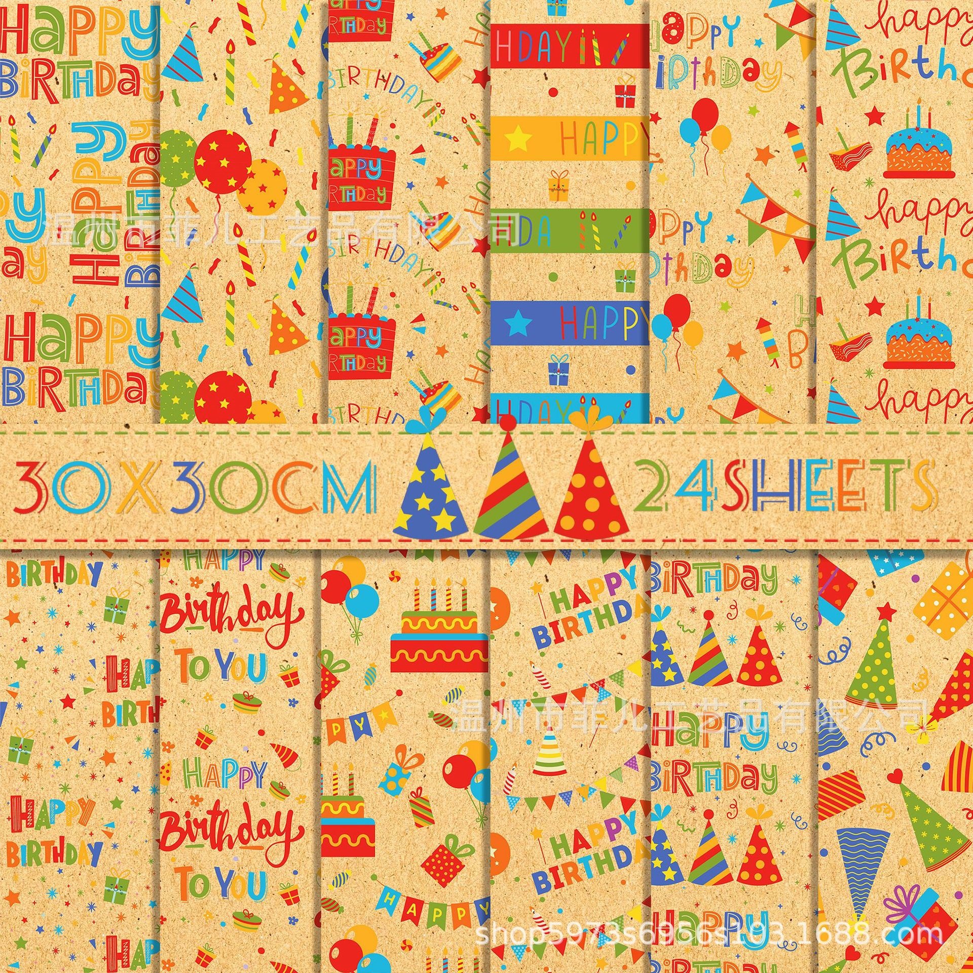 WW166 ハッピーバースデー背景紙クリエイティブ diy コラージュカード素材カラフルな誕生日帽子牛革色の背景