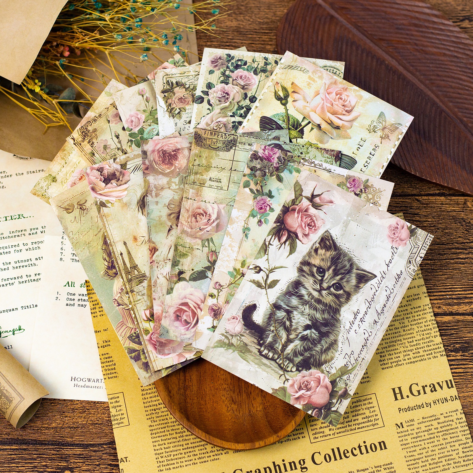 ヨーロッパとアメリカのレトロなスタイルの素材紙、手稿、テキストノート、コラージュ装飾用の底紙のクロスボーダー12枚