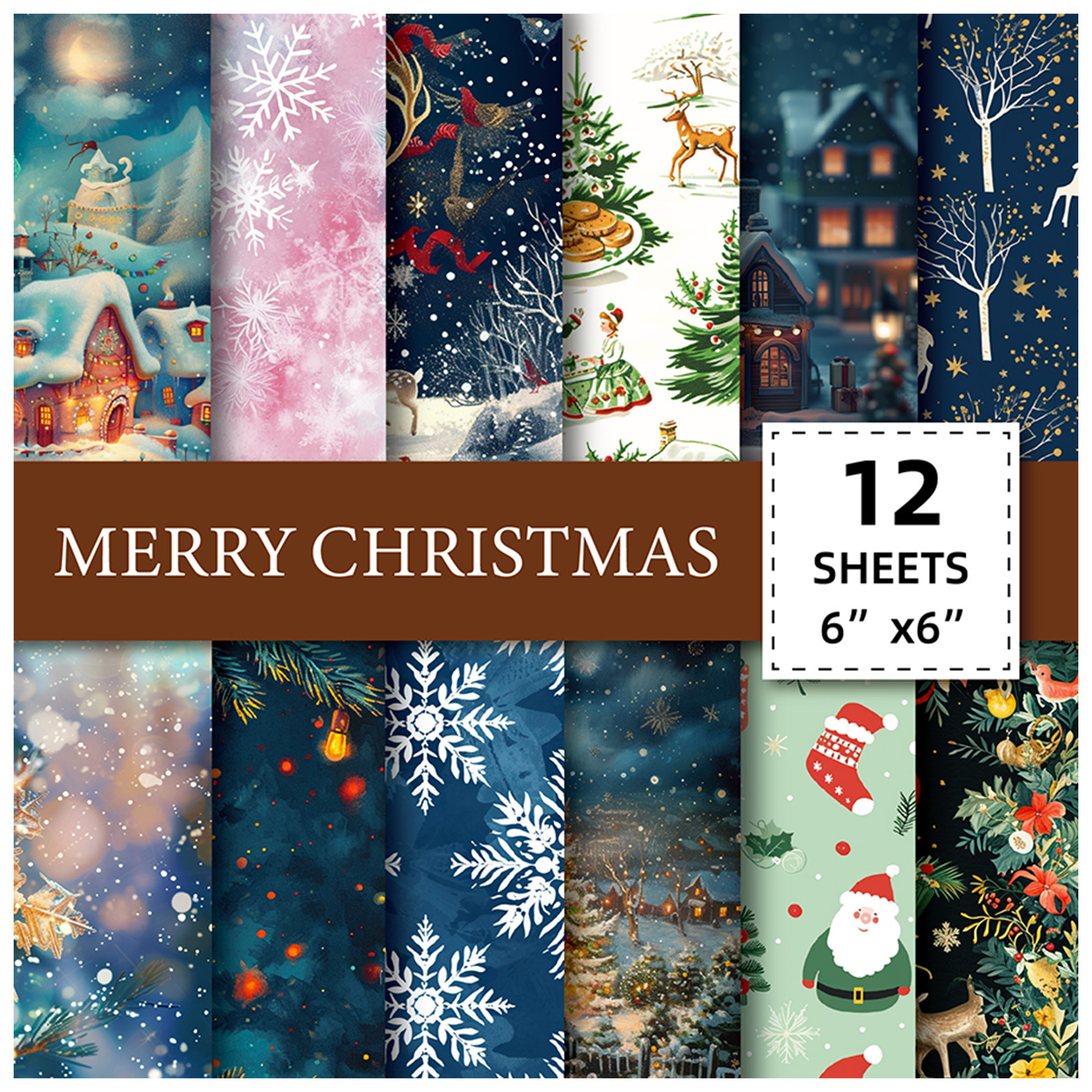 クリスマスイブのギフト包装紙12枚、クリスマスのお祝いDIYレトロハンドブックコラージュ背景紙素材紙