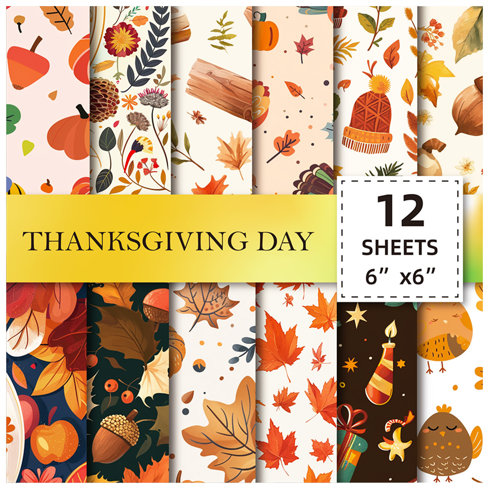 12 枚の感謝祭秋の収穫祭お祝いベース素材紙破れやすいパーソナライズされた装飾ハンドブック背景紙