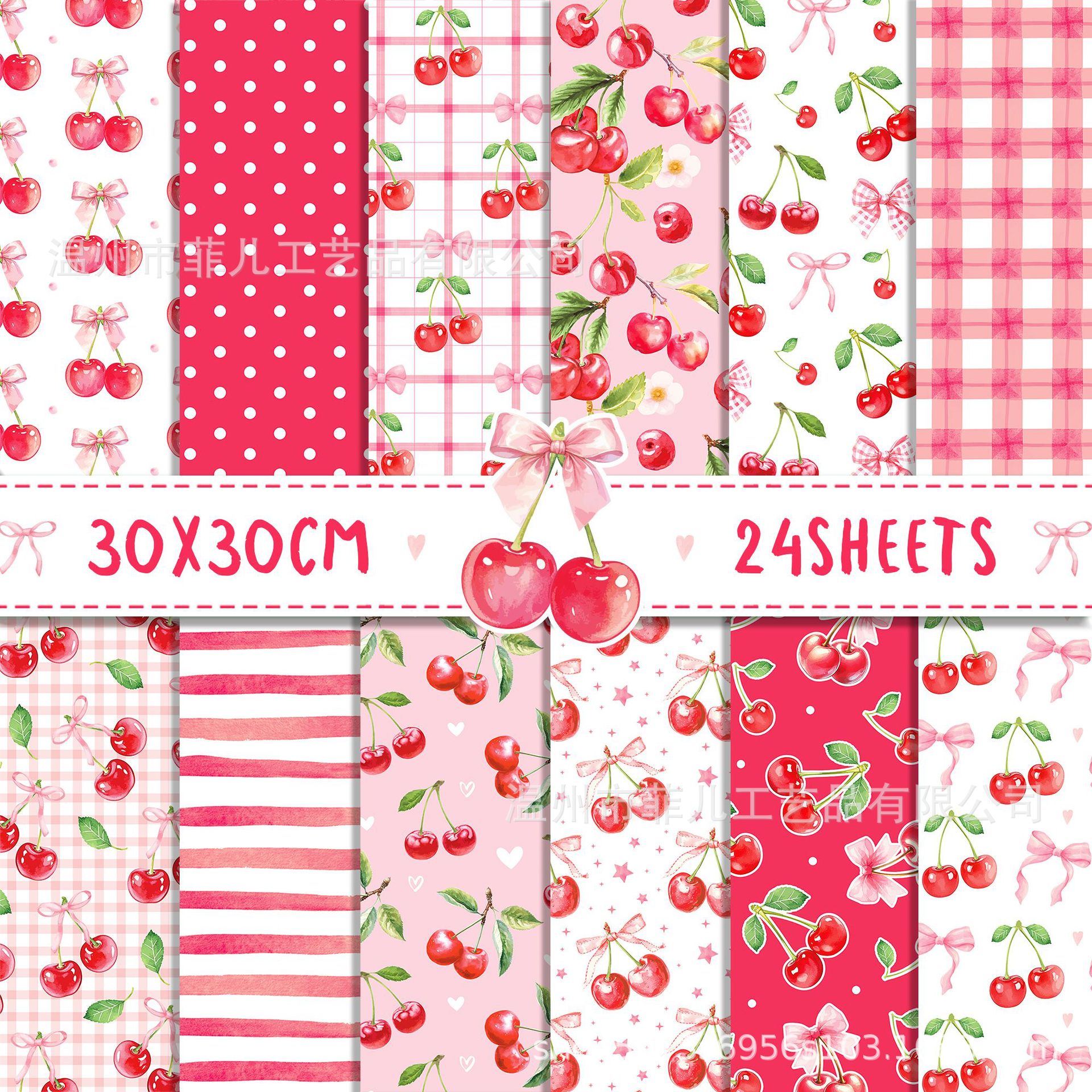 WW182 チェリー背景紙ピンク背景コラージュ diy 素材紙ピンクチェリー装飾ポーズボール紙