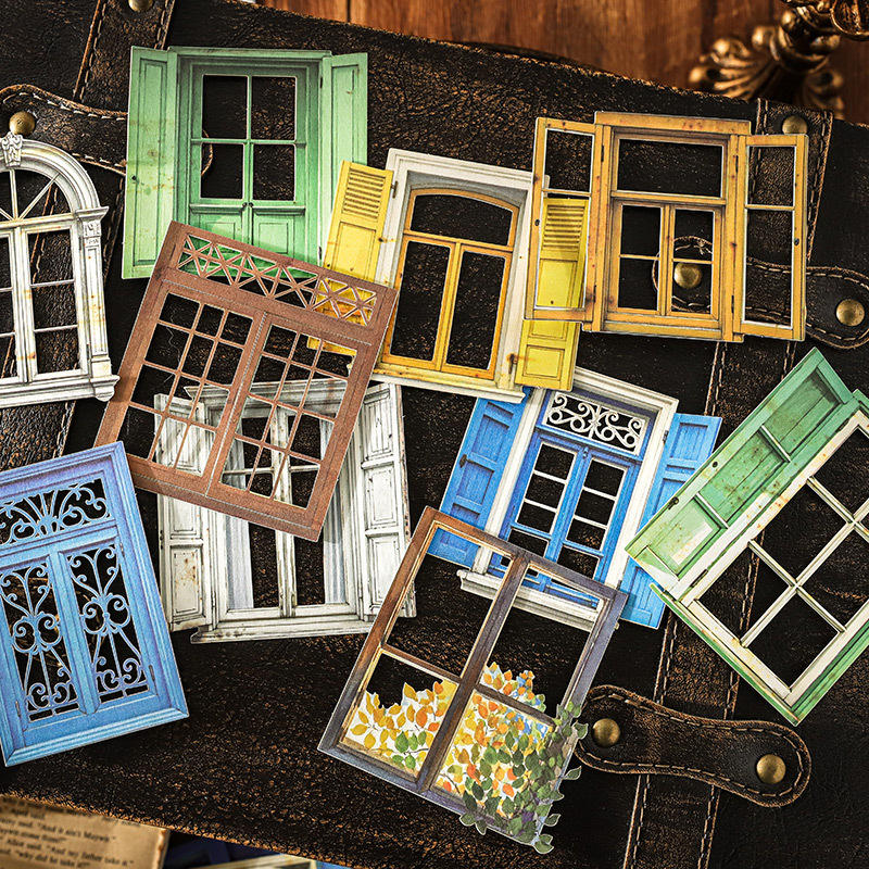 透かし彫りのドアと窓の素材を染めて、小鎮の窓の枠を探して景を作ります。
