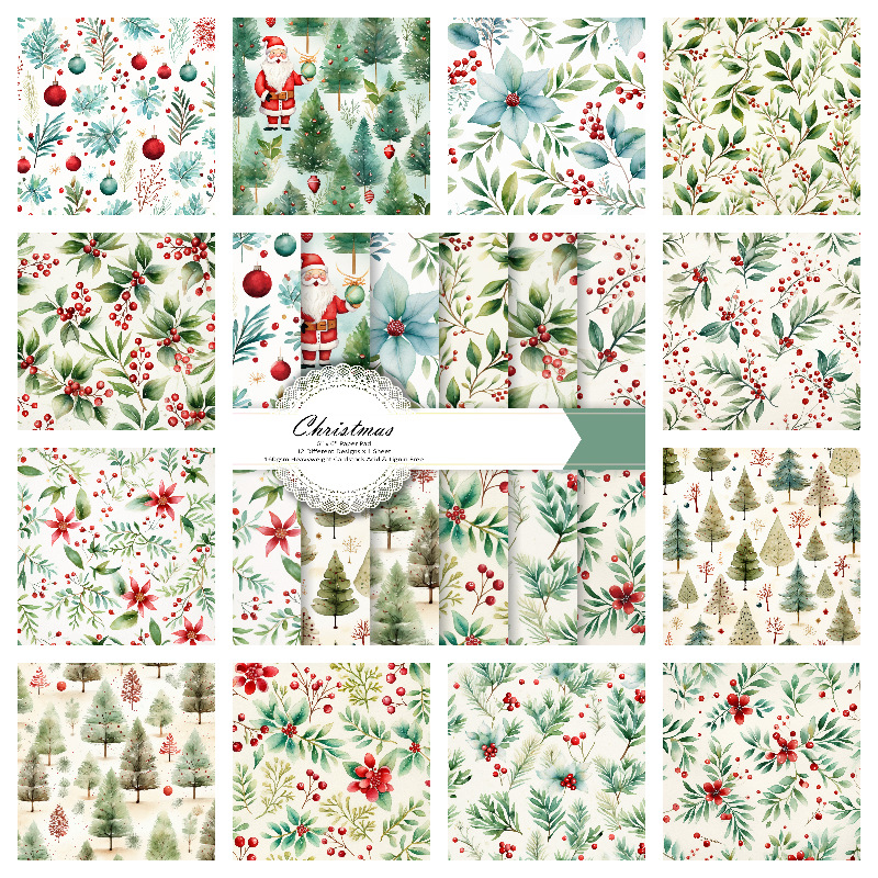 越境熱売12枚/包手帳素材包花柄クリスマス素材紙クリップカード作成背景紙