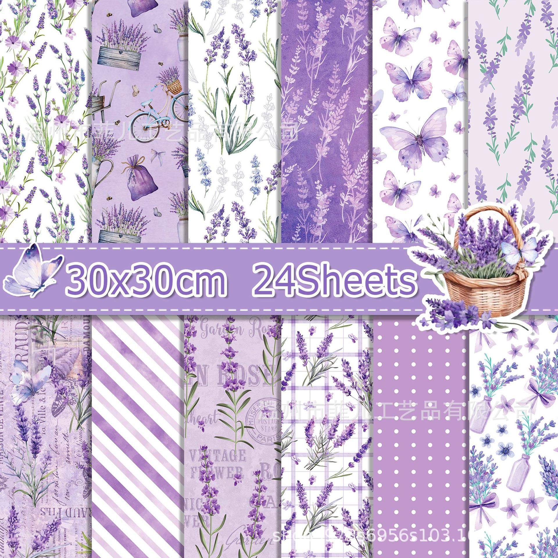 WW161紫ラベンダー背景紙文創diyタイル製カード素材紫蝶ラベンダー背景紙