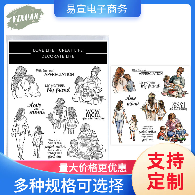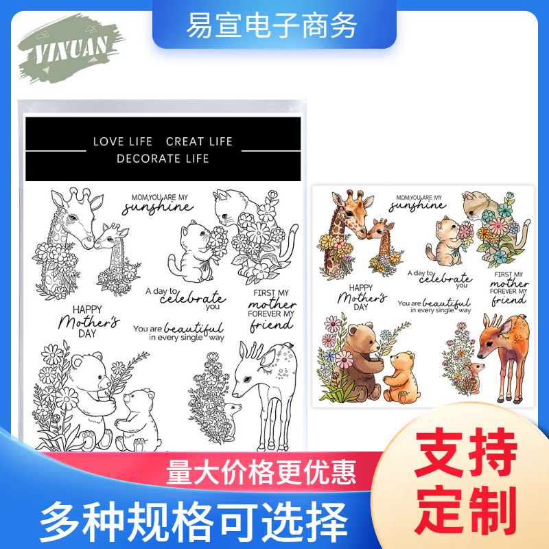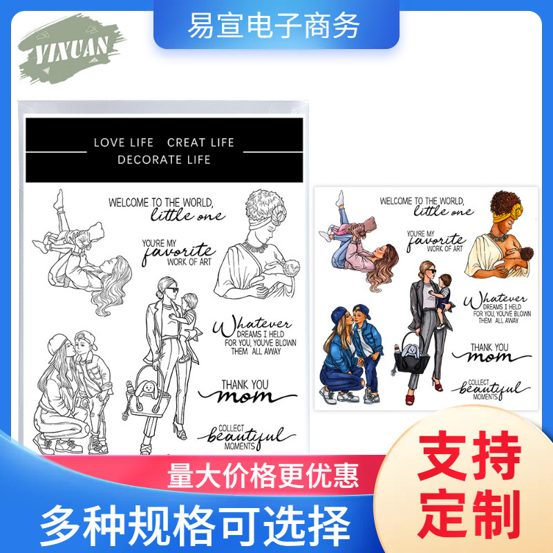 越境キャラクターシリーズ 母子の愛情 透明シリコンスタンプ 母の日 ハンドブック フォトアルバム グリーティングカード デコレーションスタンプ