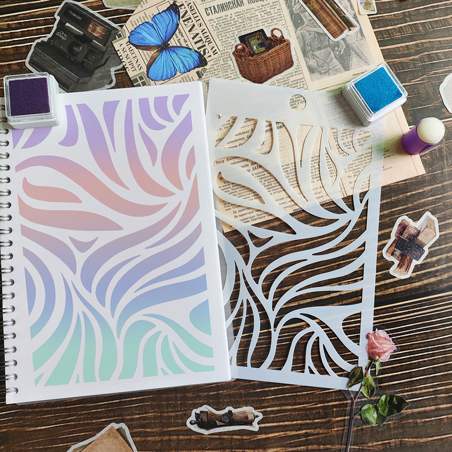 国境を越えた新型全面動植物絵画透かし彫りテンプレート手帳diy製図尺デザイン多様なスプレーモデル