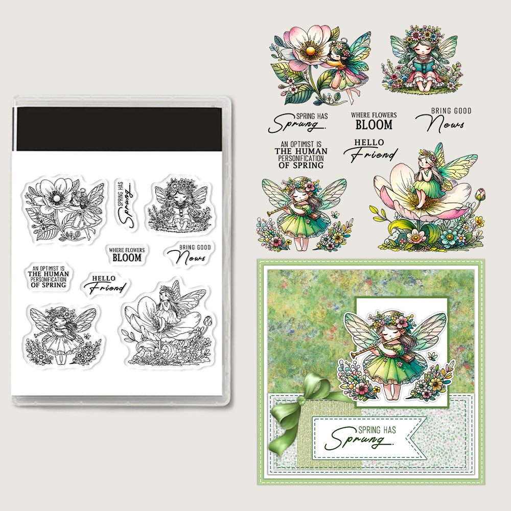 ハンドブック装飾春の花エルフガール透明シリコンシール手作りペーパーアートシリコンシールクロスボーダー配送