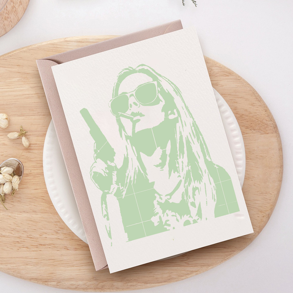 銃とサングラスを着用した女性のクリエイティブなパターン、売れ筋の絵画、中空テンプレート、壁画、ハンドブック、装飾マスキング、卸売
