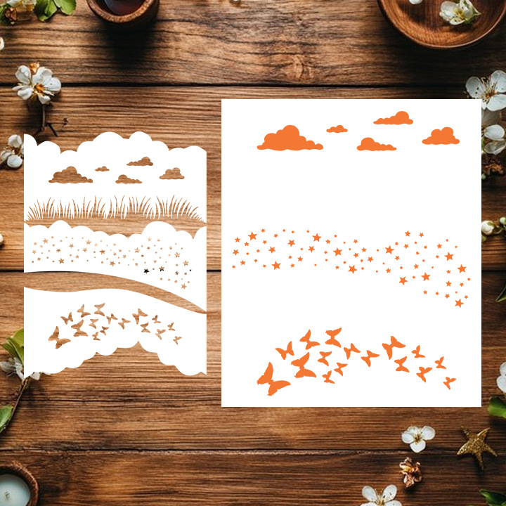 クロスボーダーデリバリーハンドブック中空彫刻プラスチックマスキングボード手描き落書きスプレー装飾白雲草マップテンプレート