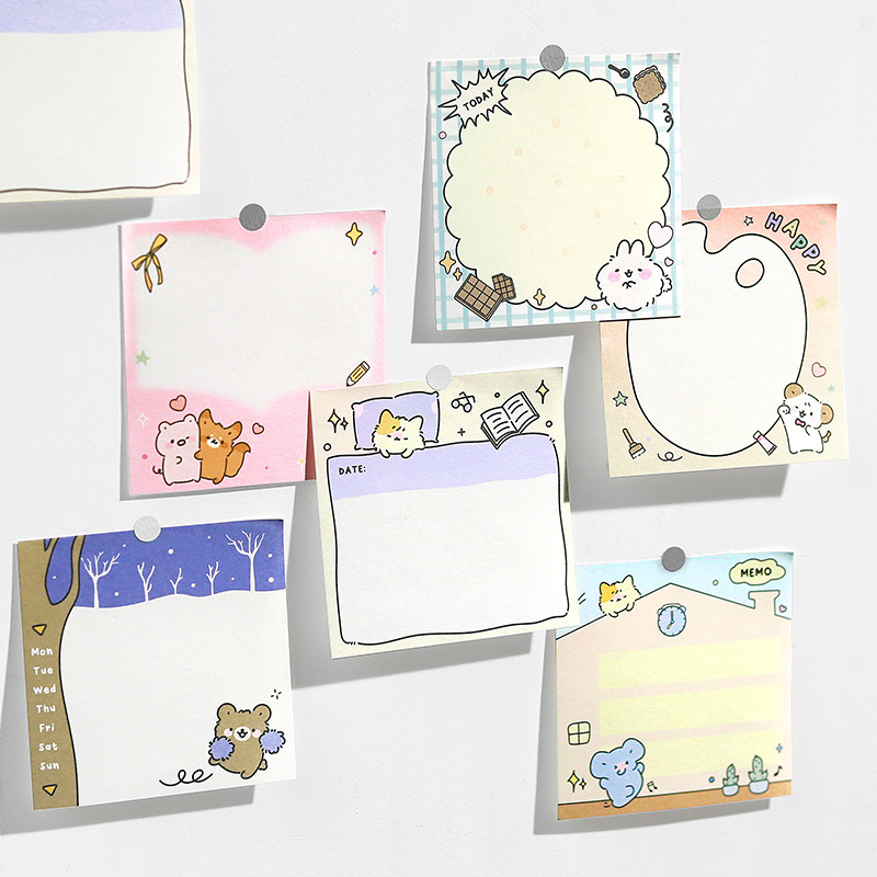 創意付箋紙手帳素材紙6枚入粘着性のない付箋漫画かわいい学生メモメッセージ紙