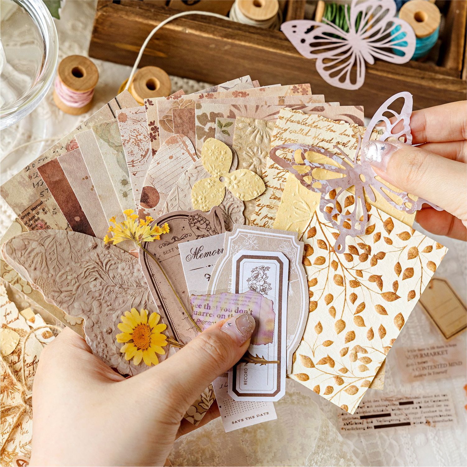 語閑双材質素材紙復古便箋シリーズ無粘性手帳diy装飾谷子打底背景紙