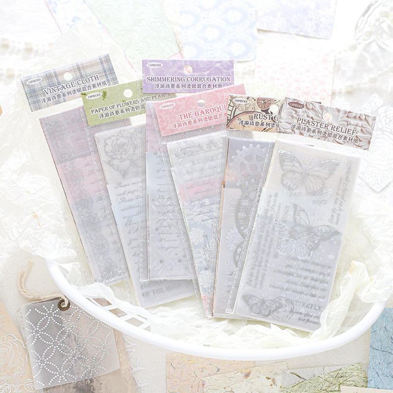 紙跡素材紙浮遊詩意シリーズシンプルエンボス混合手帳タイル19枚入6種類