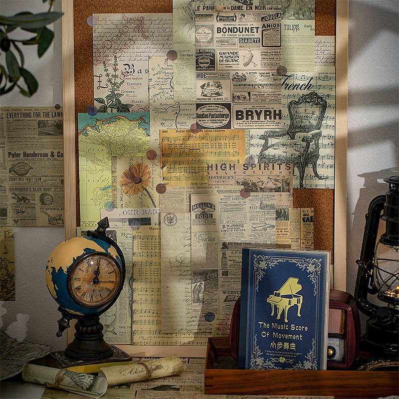語閑ロマンチック地帯素材本レトロ新聞地図文芸手帳タイル底紙30枚入6種類