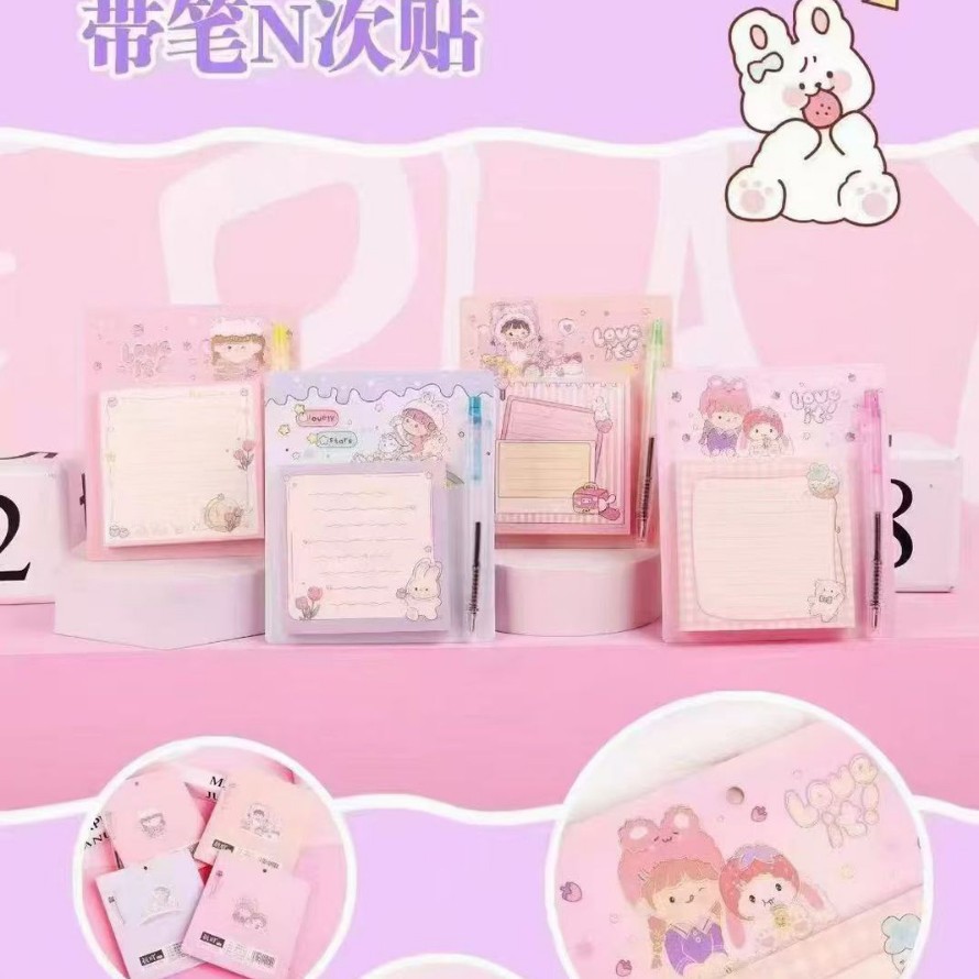 ペン付きの絶妙なN回付箋、粘着性のある学生のかわいいメッセージ用紙、見栄えの良い女の子のメモ帳