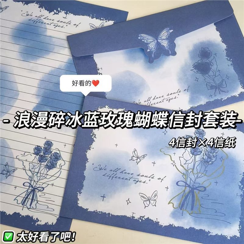 ロマンチックな砕いた氷ブルーローズ蝶便箋セットクリエイティブ手書き祝福グリーティングカード便箋カップル