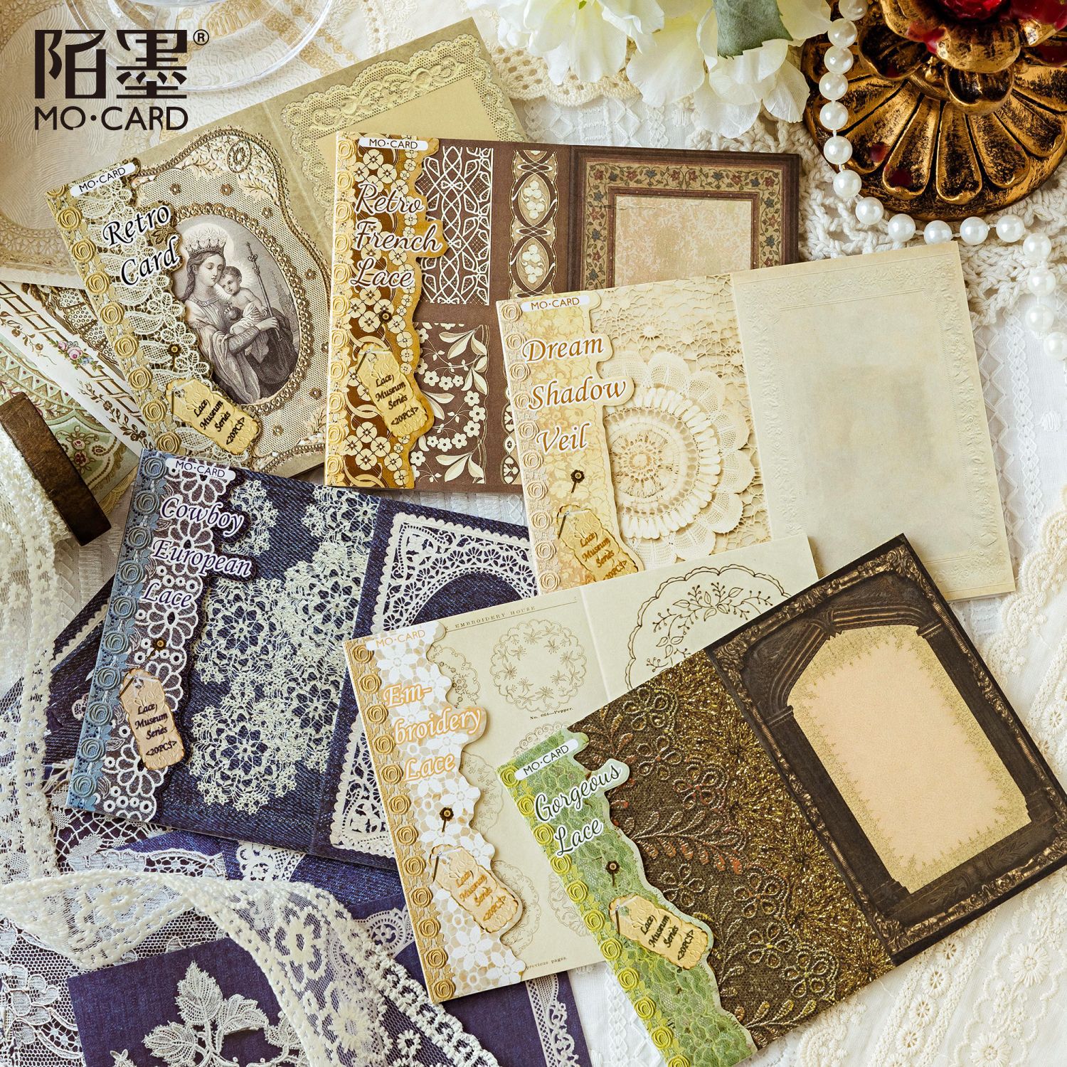 見知らぬ墨の透かし彫りの枠のカードはレースの光影のシリーズの軽い復古の素材を包んで粘りがない手帳の装飾の伝言を残します。