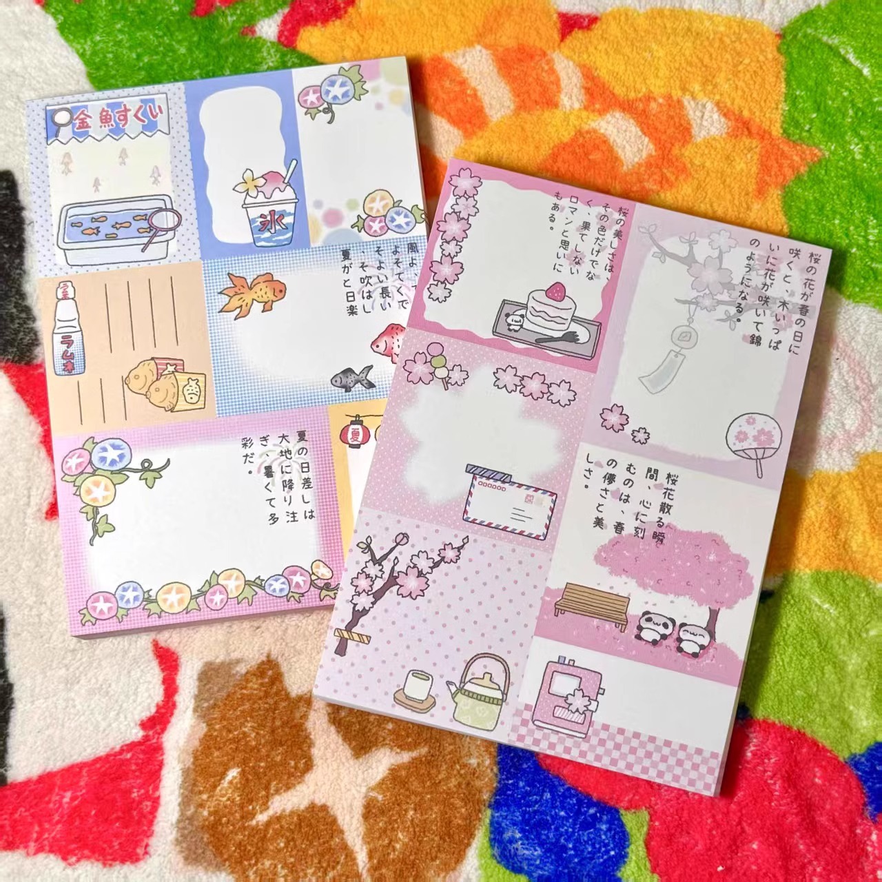 巻き巻き巻き | 面付け便箋春の日桜夏の祭りの日に書くことができる手帳便箋紙素材タイル飾り