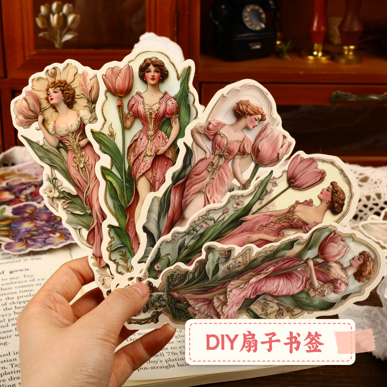 厳選されたレトロでクリエイティブなインス風手帳、文化的で創造的なブックマーク、ヴィクトリアシリーズ扇子ブックマーク、手帳DIYコラージュの代発送