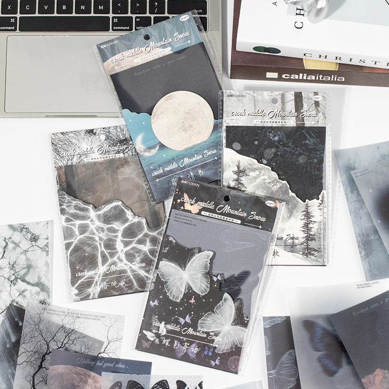 語閑硫酸紙素材紙渓間山雪シリーズins風創意手帳痛包diyコラージュ
