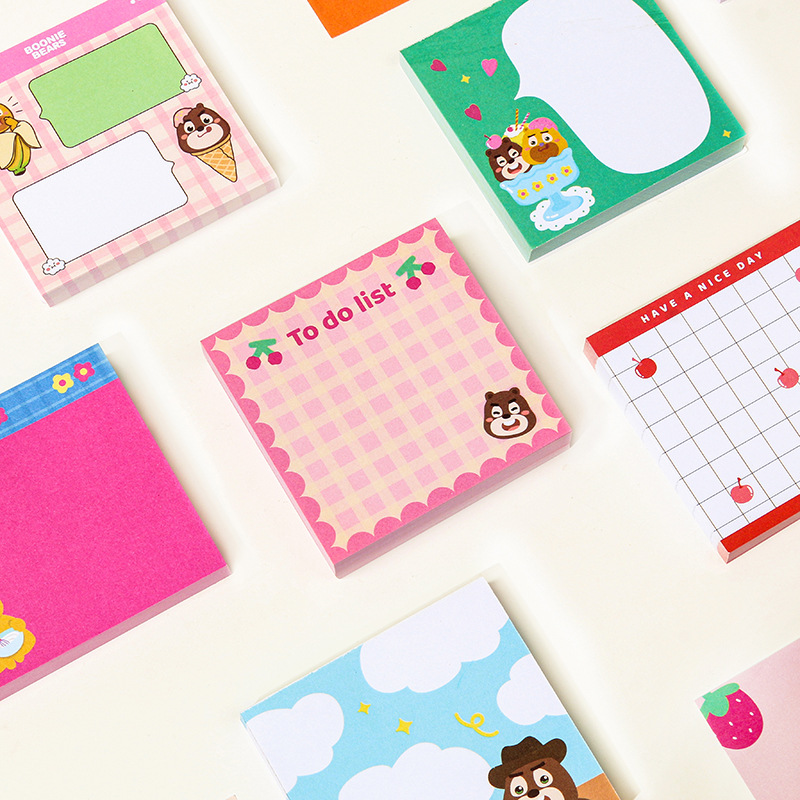 100ページの漫画のクマの付箋、女の子のハート、小学生のギフト、ポータブルノート、メッセージステッカー、テイクアウトノート