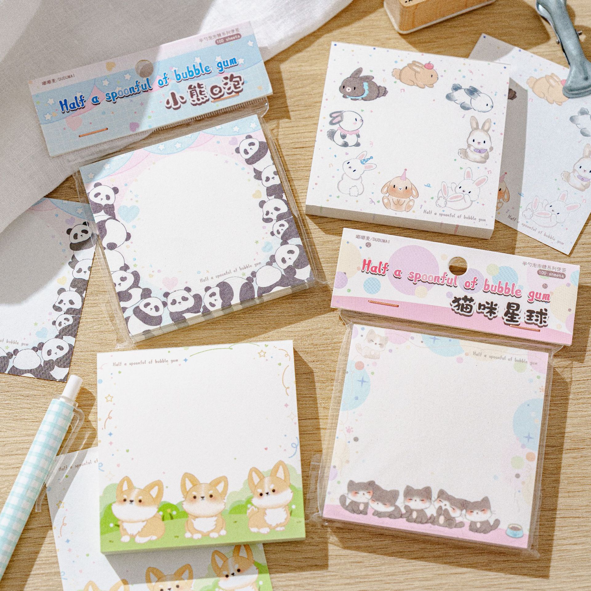 100枚のビープ音の半スプーンの泡糖の付箋の紙の粘着性がないinsかわいいかわいいペットの動物の枠の手帳の素材