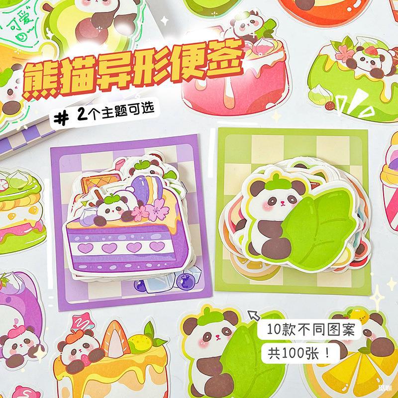 可爱异形熊猫便签卡通手帐DIY打底素材纸学生办公室留言纸100张