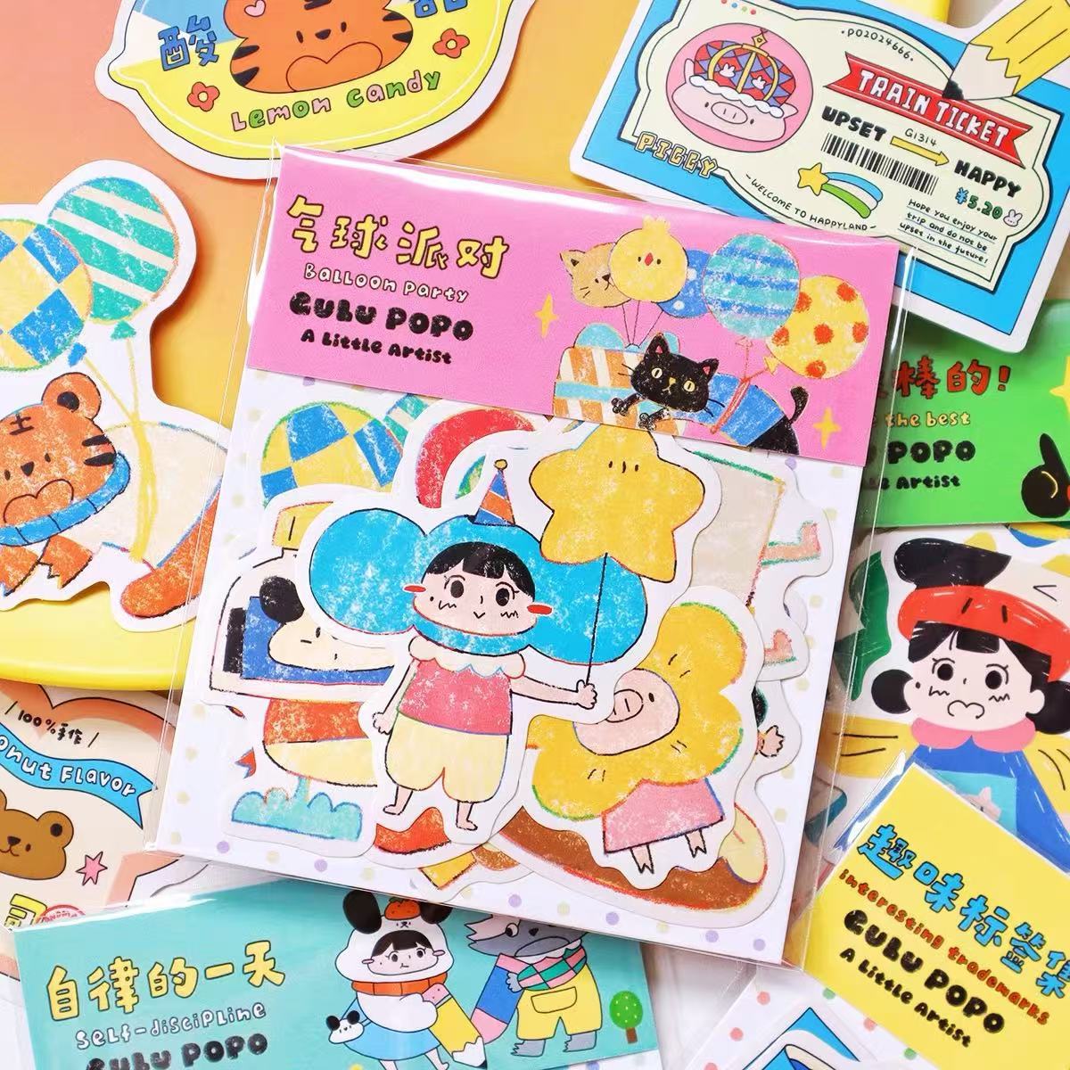 義烏吉旅悦真 モンキャットタウンシリーズ ボックス入りステッカー 漫画風可愛い手帳DIYスマホケースデコレーション