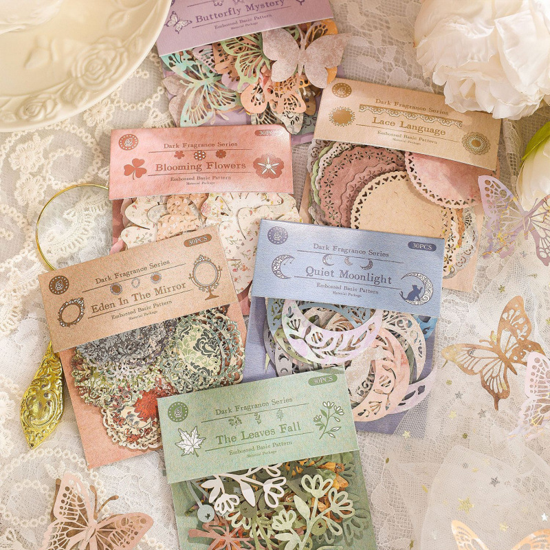 墨シリーズの基礎模様の材料は軽いレトロな塩系の透かし彫りのレースの手帳の装飾を包んで底を打ちます。
