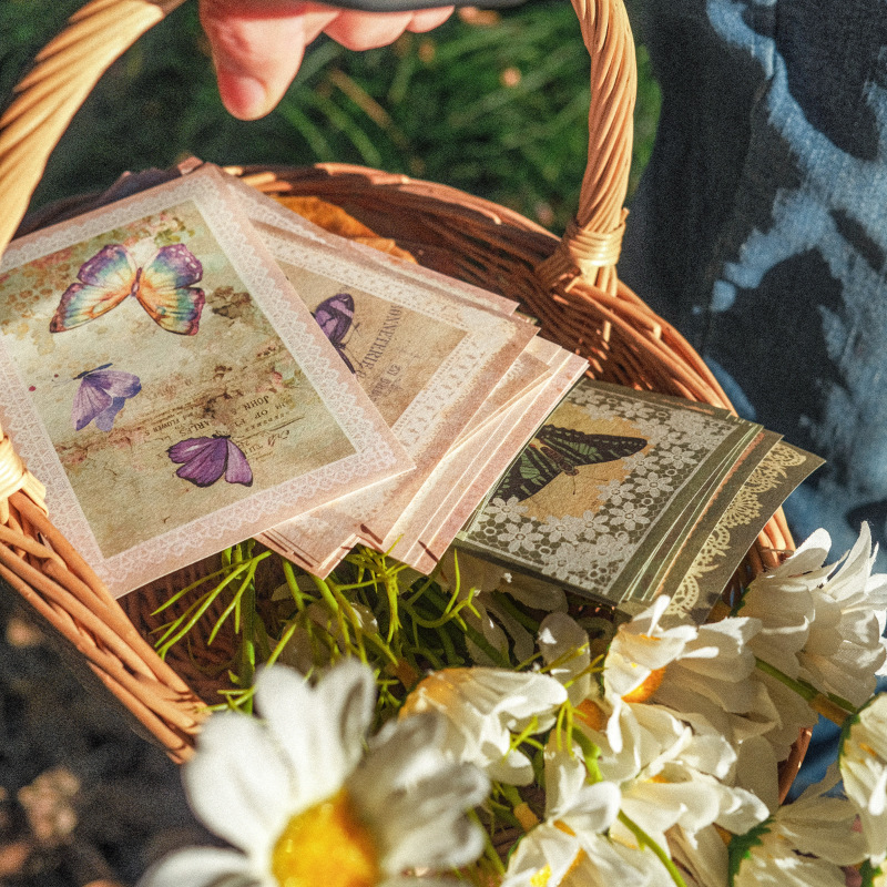 砂糖詩レース蝶詩シリーズ素材紙文芸レトロ枠diy手帳底飾りタイル6種類