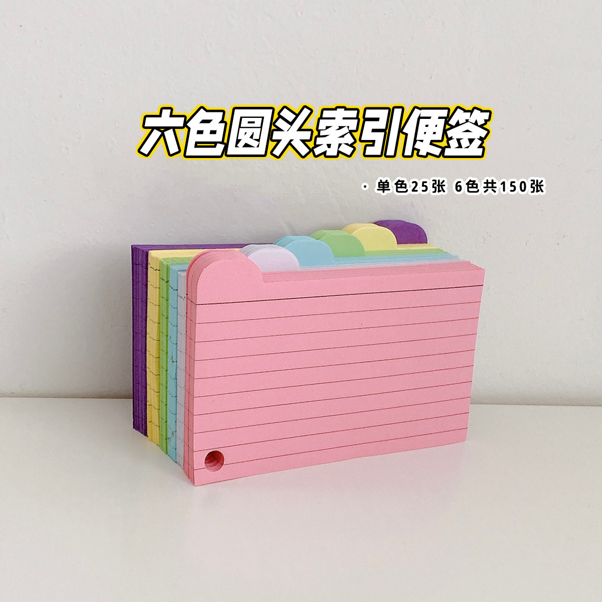 六色の丸い頭の索引の付箋の本のアメリカの3寸の索引カードの横線のカードのノートの英語の単語のノート