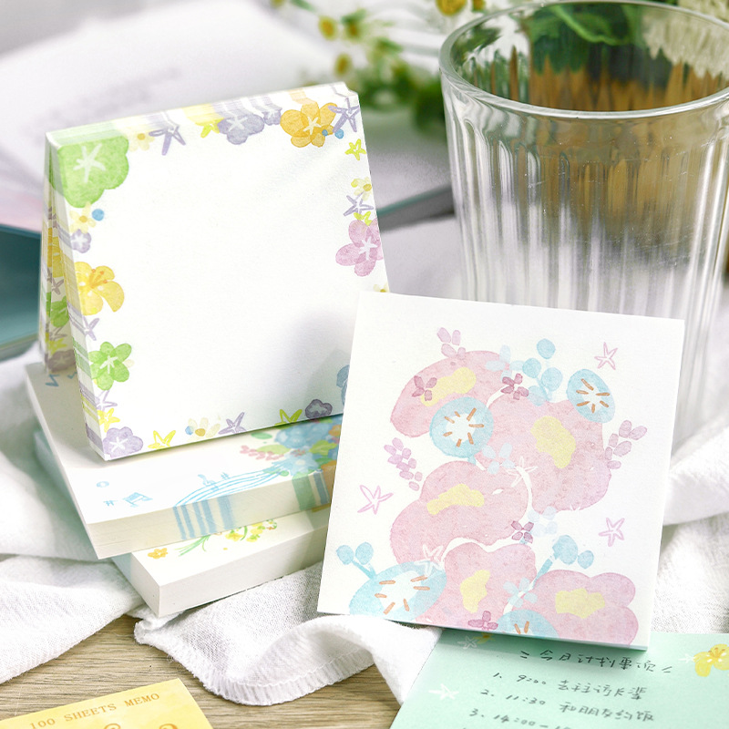 100枚入りのノート用紙「枝間花芸シリーズ」、爽やかな花柄の手帳メッセージデコレーション素材