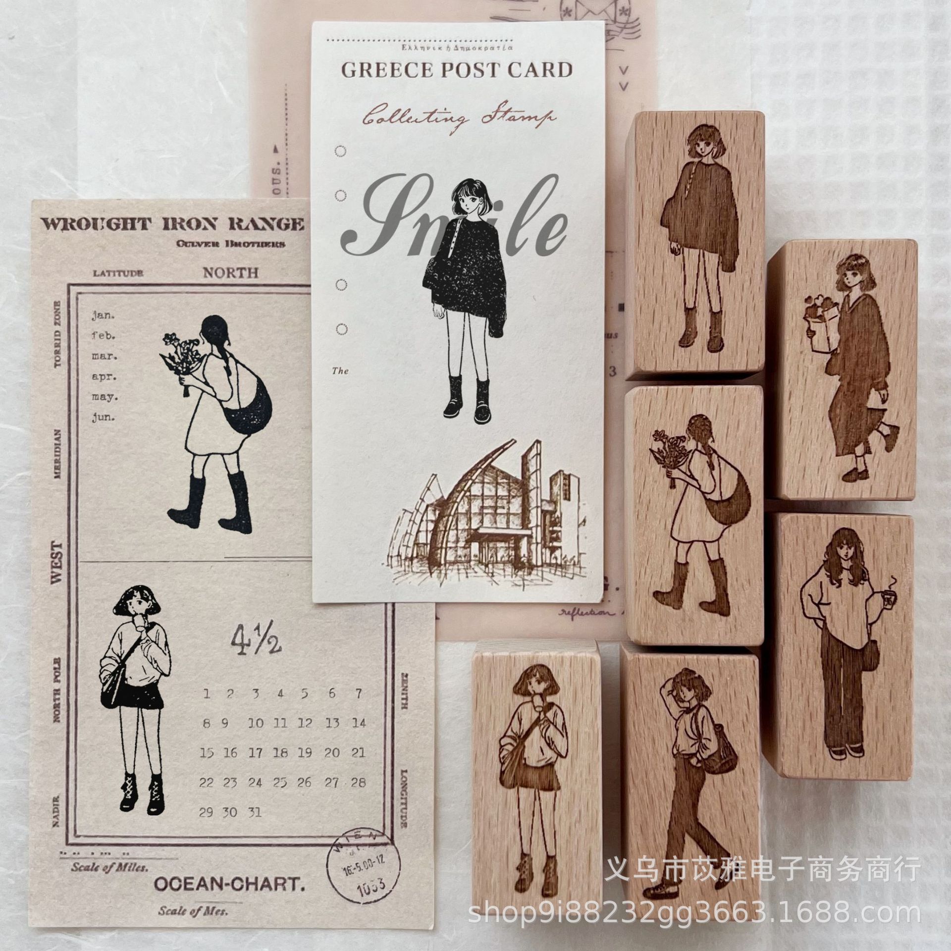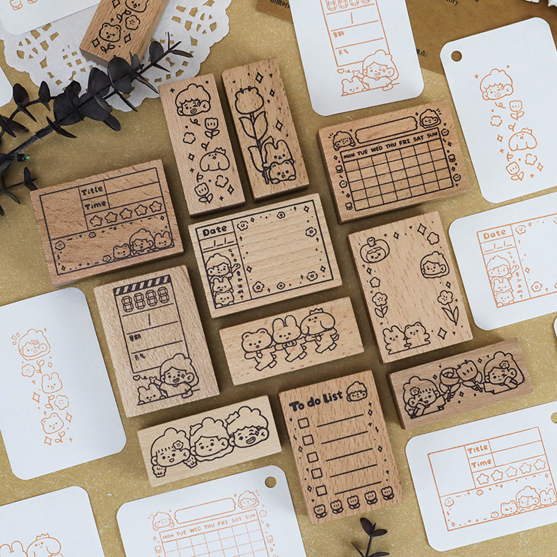 レトロなキャラクターパターンハンドブックシール木製文学シンプルなパターンシールかわいい漫画キャラクター文化創造シール
