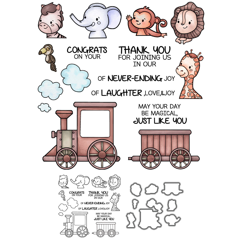 動物列車シリコンシール透明スタンプクリスタルスタンプエンボス加工ナイフモールドハンドブックフォトアルバムカード装飾材料