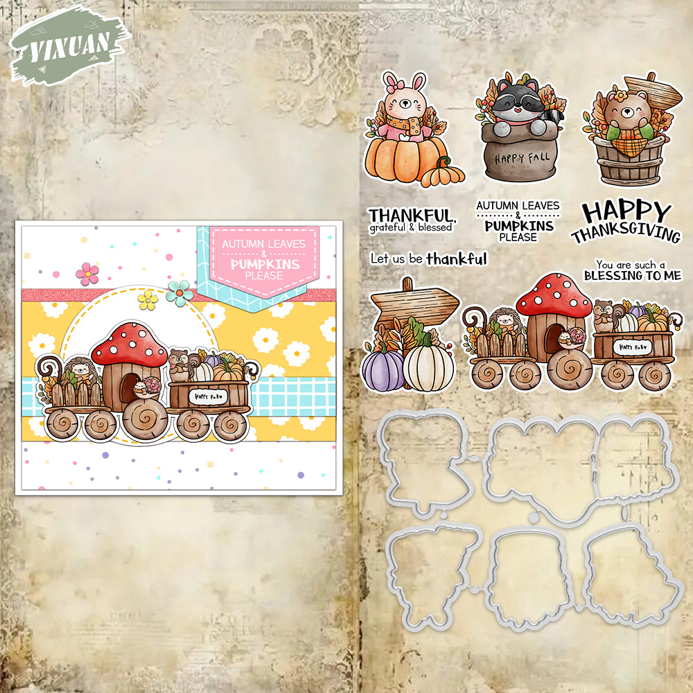 オリジナル感謝祭動物列車シリコーン透明シールハンドブックシールドロップシッピングハンドブック装飾シール卸売