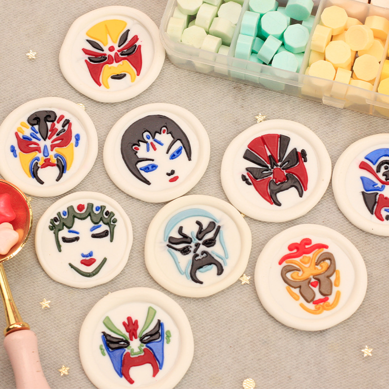 中国式印鑑シングル頭国粋顔譜シリーズ火漆京劇顔譜円形印鑑手帳製作装飾diy