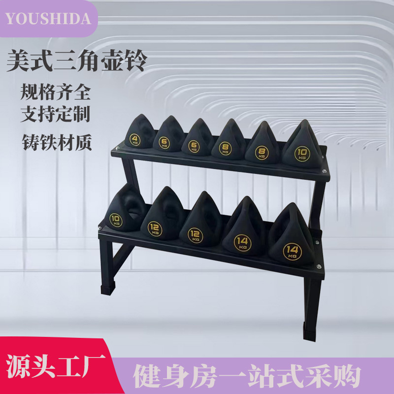 新しいアメリカンスタイルのプラスチック浸漬ケトルベル三角形ダンベルプラスチック浸漬ダンベルフィットネス機器三角形ケトルベル